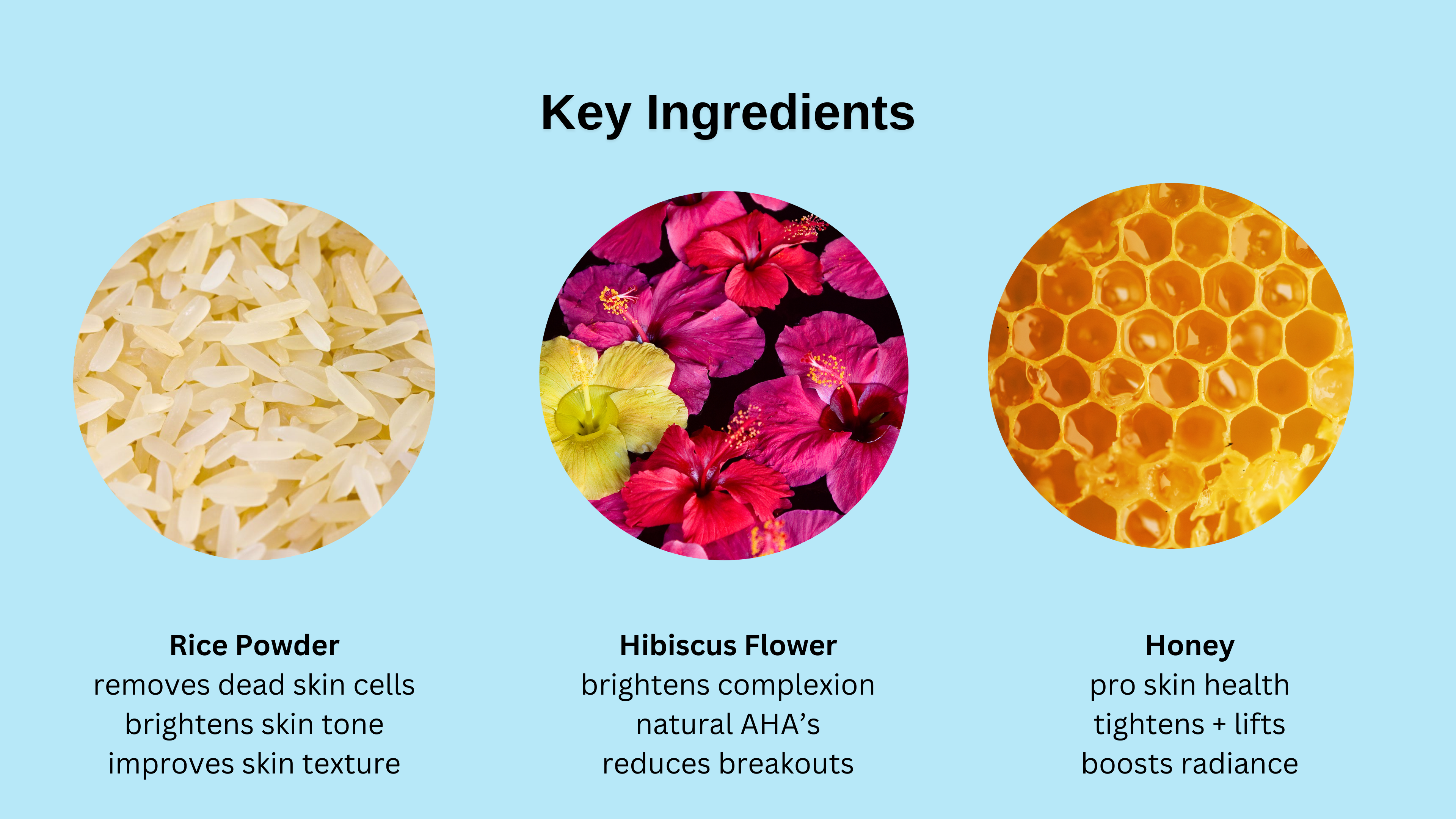 ✚ Honey – Naturally antibacterial and anti-inflammatory, honey reduces breakouts and locks in moisture for lasting hydration.