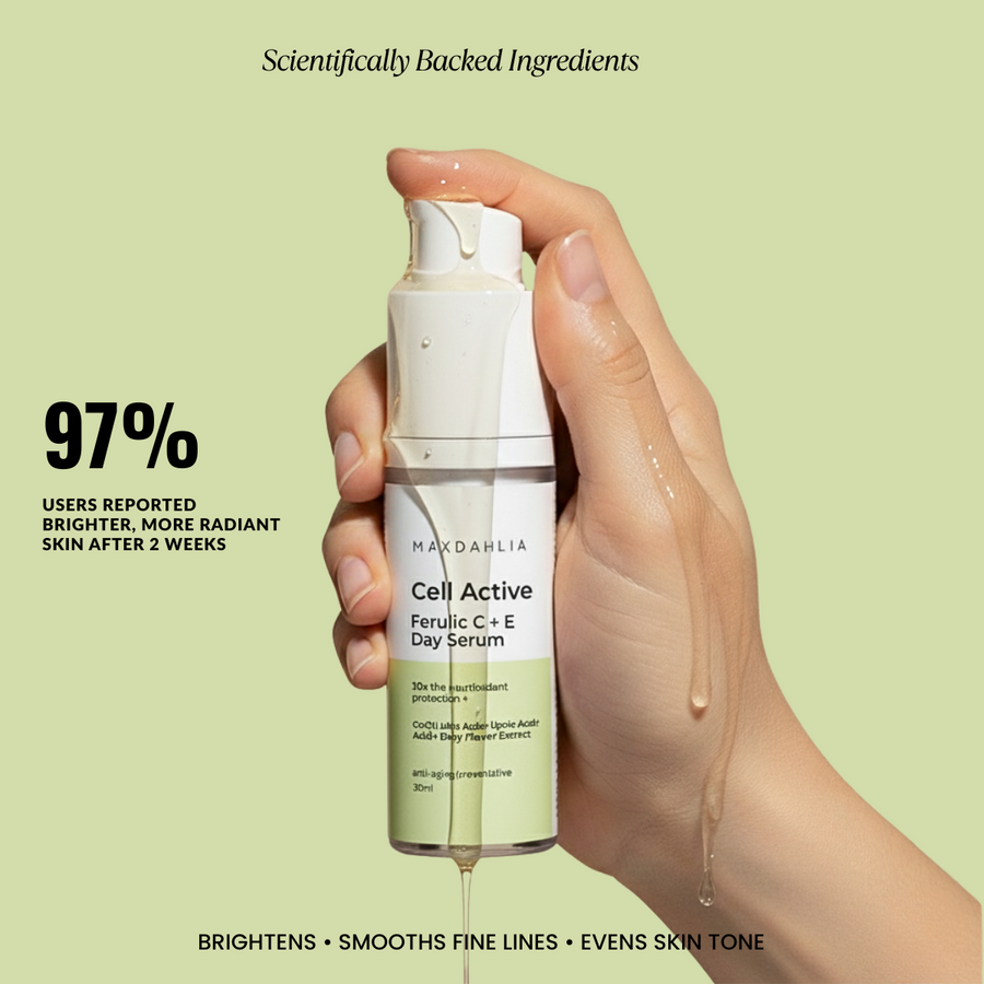 While some products, such as our Cell Active Ferulic C + E Day Serum, provide an immediate glow, more significant improvements like reduced dark spots or improved hydration typically take 4–6 weeks of consistent use. The timeline can vary depending on your skin’s condition and the product you’re using.