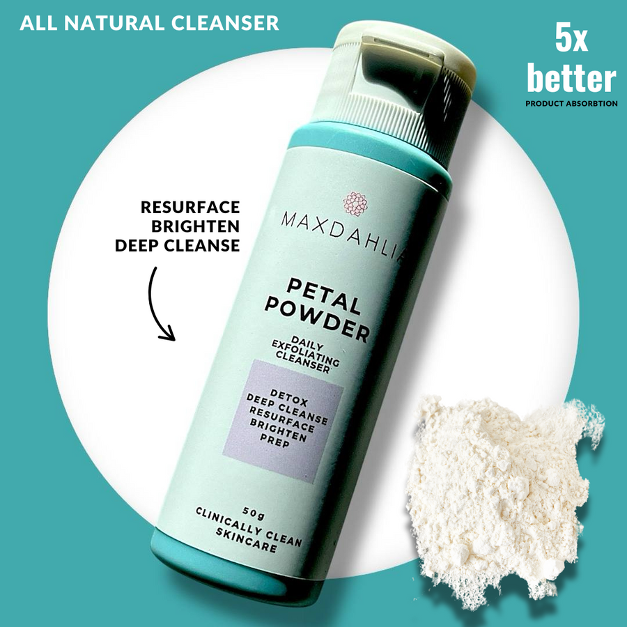 ✚ Petal Powder Daily Exfoliating Cleanser – A gentle yet effective powdered cleanser that transforms into a creamy foam when activated by water. Crafted with pure plant-based ingredients, this cleanser deep cleans, detoxifies, and balances the skin without stripping its natural moisture. The combination of manual and physical exfoliants gently removes dead skin cells and impurities, preparing your skin for better product absorption while revealing a smoother, brighter complexion.