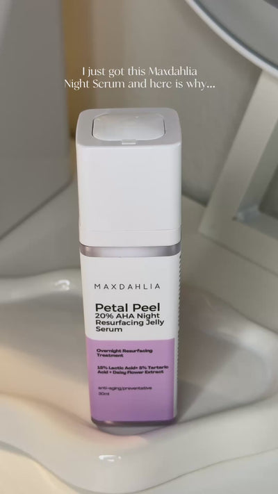 ✚ Petal Peel AHA Resurfacing Jelly Serum – A 20% AHA night treatment that resurfaces and renews the skin. This gentle yet powerful serum brightens the complexion, reduces fine lines and hyperpigmentation, and smooths uneven texture, leaving your skin luminous, even-toned, and visibly youthful.